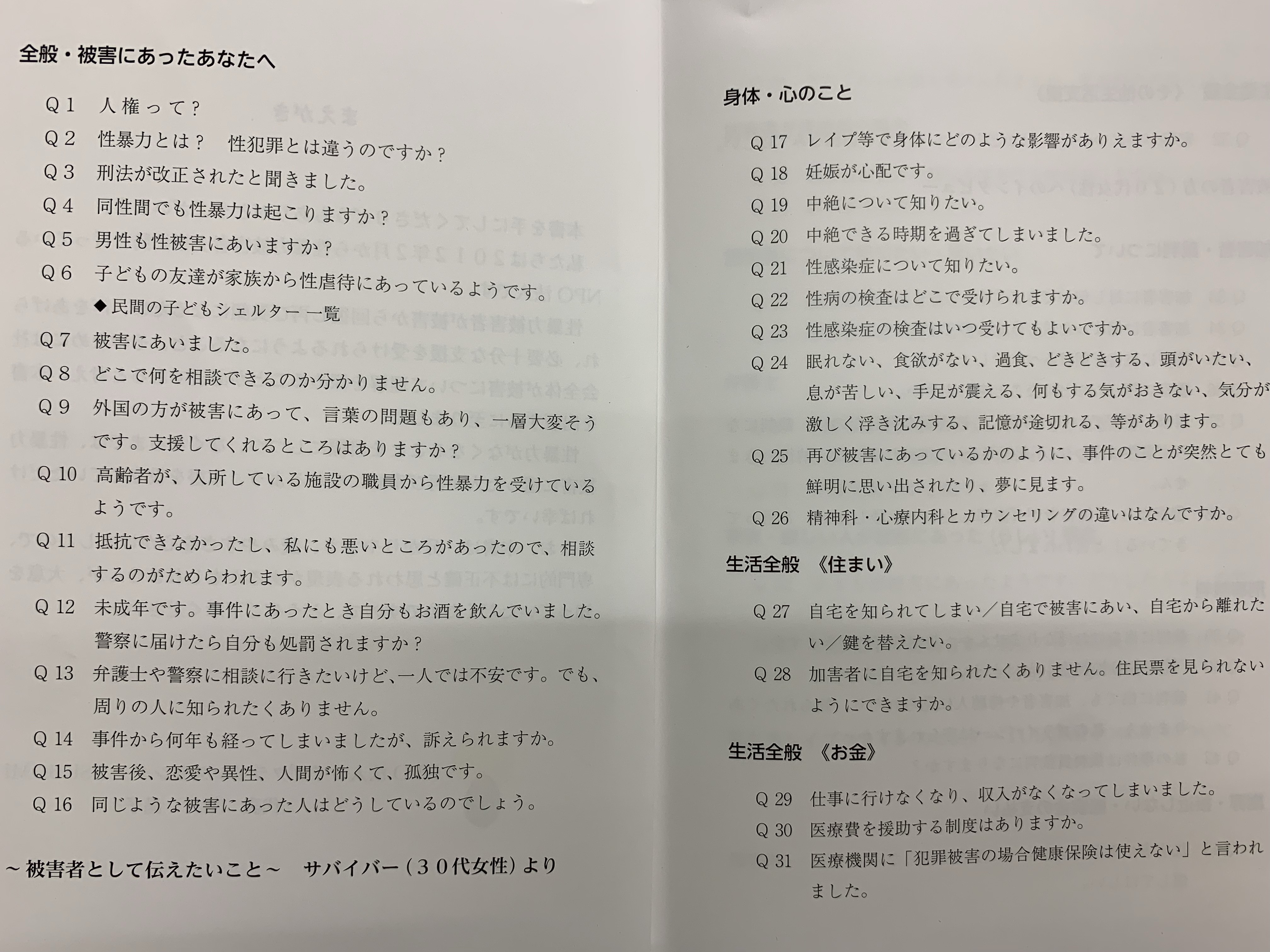 性暴力被害者のためのサポートブック 53のQ&A 増刷できました。